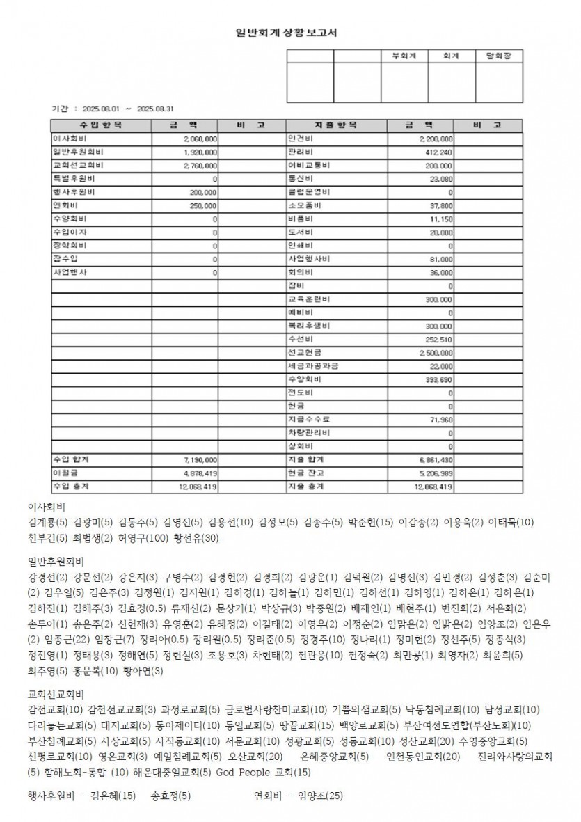 목록 8월 재정보고 작성자 간사 작성일 25-09-02 14:54 | 조회 224 | 댓글 0 본문 할렐루야~~!! 무더운 여름 선교동역자님들의 개인과 가정과 교회와 일터에도 주님의 평강이 함께 하셨지요? 고생하셨습니다. 9월에도 주님의 평강이 우리 선교가족들에게 함께 하시길 기도합니다.회계보고 올려드립니다. 이전글다음글 댓글목록 0 등록된 댓글이 없습니다. 목록